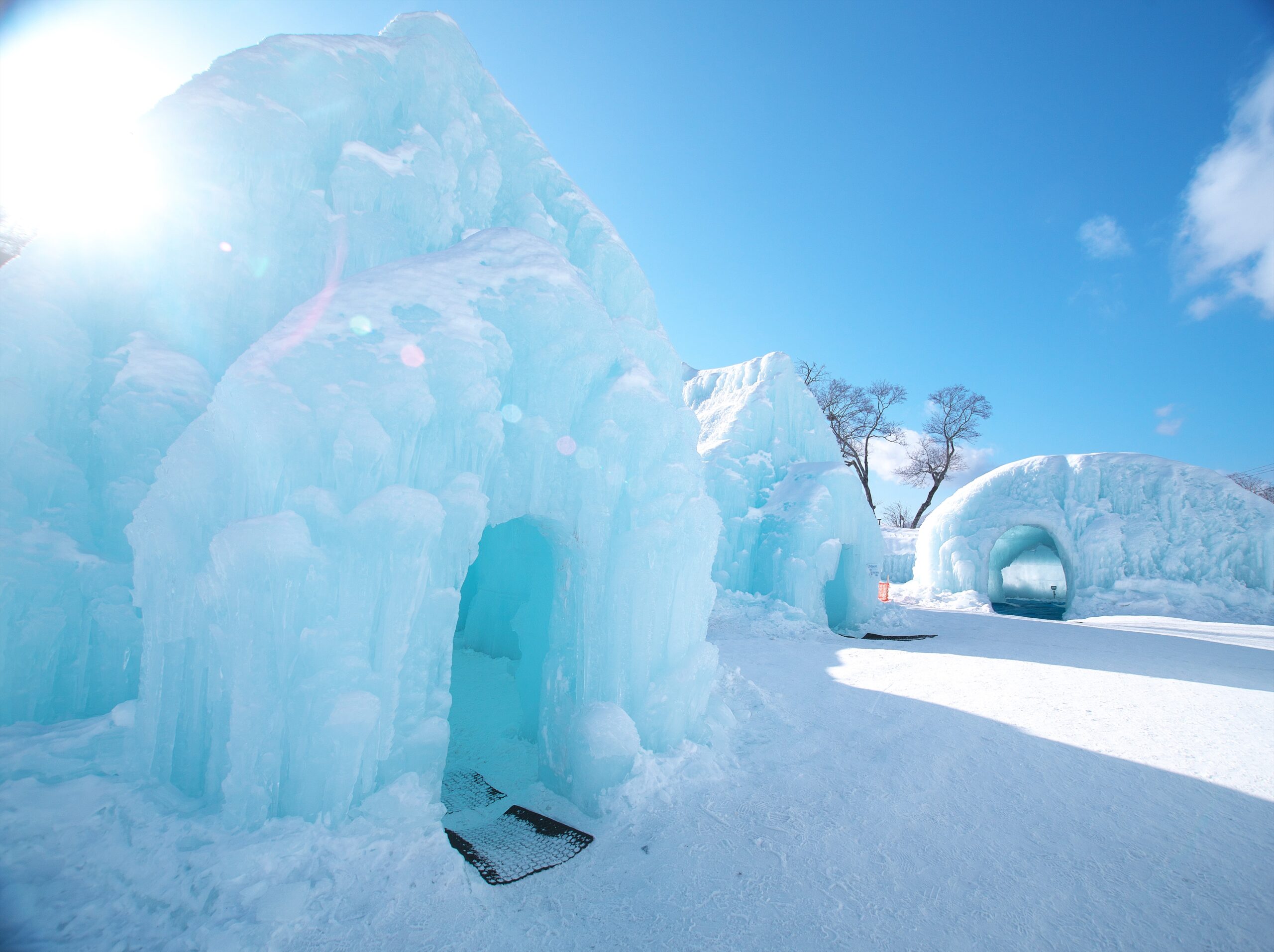 One of Hokkaido’s three major winter festivals, this event transforms the Ishikari River banks into a 10,000-square-meter frozen wonderland. The festival features approximately 30 massive ice sculptures, multi-story ice structures with interior mazes, a 13-meter observation deck, and an impressive ice tunnel that can stretch over 100 meters.
